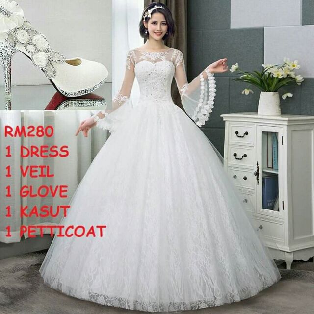 Bell Sleeves Wedding Gown Shopee Malaysia