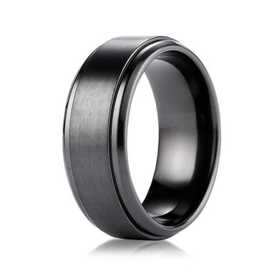 Mens Black Titanium Satin Center 9mm Wedding Band Color Black